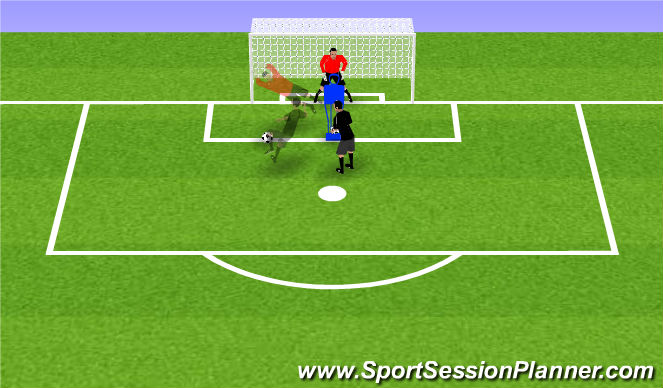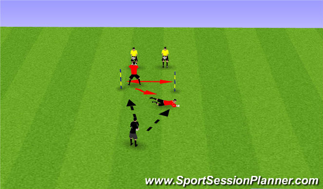 1.El portero se desplaza hasta el cono, donde podrá recibir un tiro a portería o no.