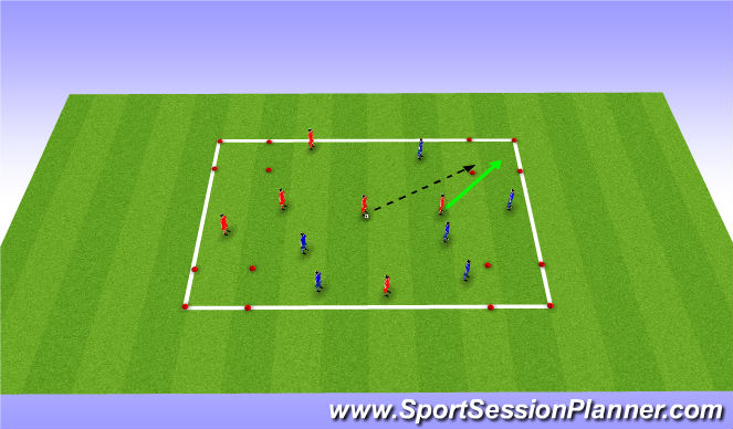 Coaching Points: Don't play into congested areas, play quickly, support for the player on the ball, switch play to areas where there is space.
