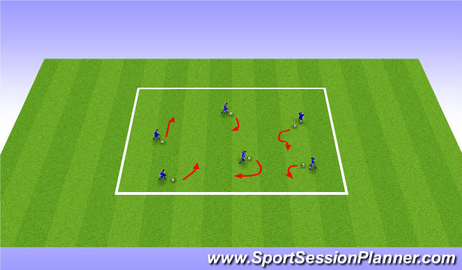 Each player has a ball. Have the players try to use the 4 surfaces of the foot in 1 fluid motion in this order: Outside, Inside, Laces and Bottom, Transfer the ball from the right to left foot after they stop the ball with the bottom (sole of the shoe) When the players display proficiency, challenge them to do it faster and in a smaller space.