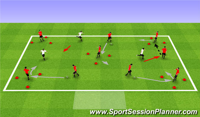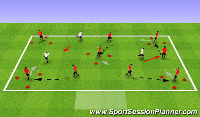 3. The player inside the triangle must then dribble the ball outside the triangle and find a new one for safety.