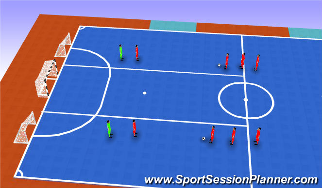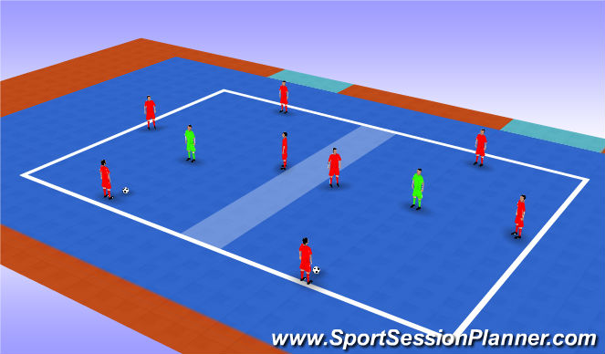 Setup to the side of the goal. Mini Goals are placed to the side. Server plays a pass into the pivot who looks to receive the ball and finish into the mini goals. Again emphasis is placed on the Sole Trap and Sole Role. If the pivot receives the ball and traps it then that is the signal for the server to join in and make a 2 v 1. If the pivot uses the Sole Role then he has to try and beat the defender in a 1 v 1 scenario.