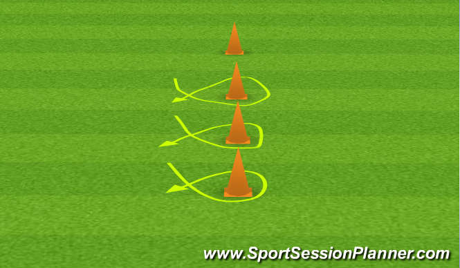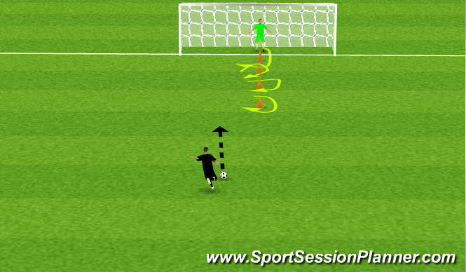 Gk moves around first cone and across to receive service from S. Recovers and moves around next cone for service. Repeat for all 4 cones.