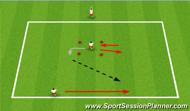 12) Player C receives Pass and dribbles to the end of next line