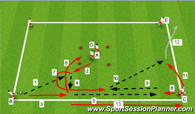 5) Player B Plays ball down the line to Player C