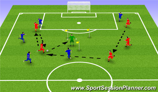 - Instruct both teams to attack the 3 sided goal