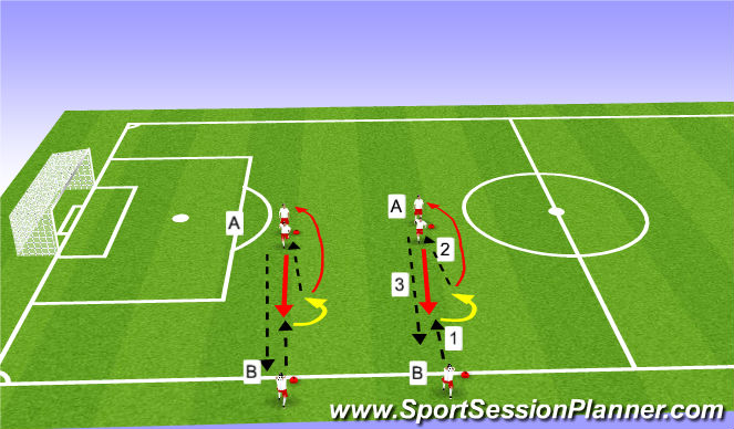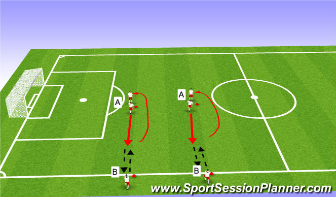 Instead of controlling the ball, player A lets the ball run and then does a pass to next A