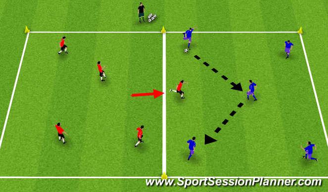 Players on the outside have to move to creat space and be free from there opposite yellow defender to combine with middle players.