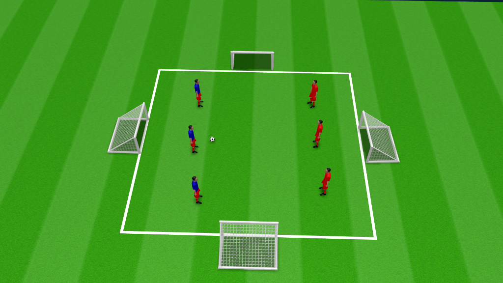 2 teams and the attacking team needs to score a goal in any of the 4 goals.