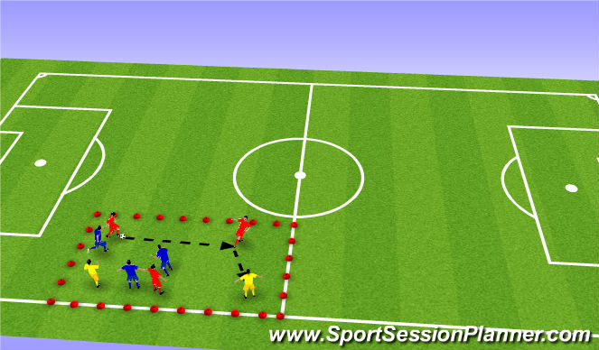 Activity:(5-10 minutes) in 10-15 x 10-15 (depending on size and skill level) yard grid, players pass the ball to each other without allowing the defender to touch the ball