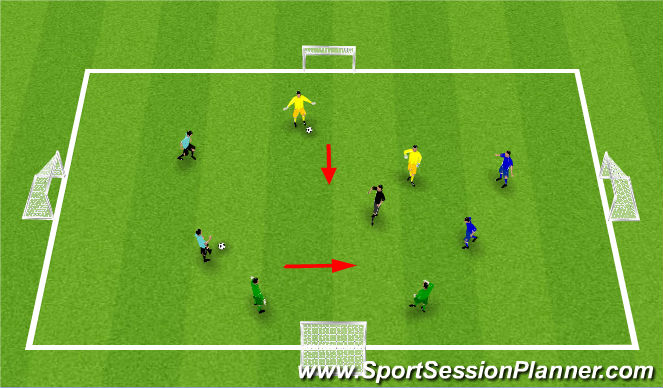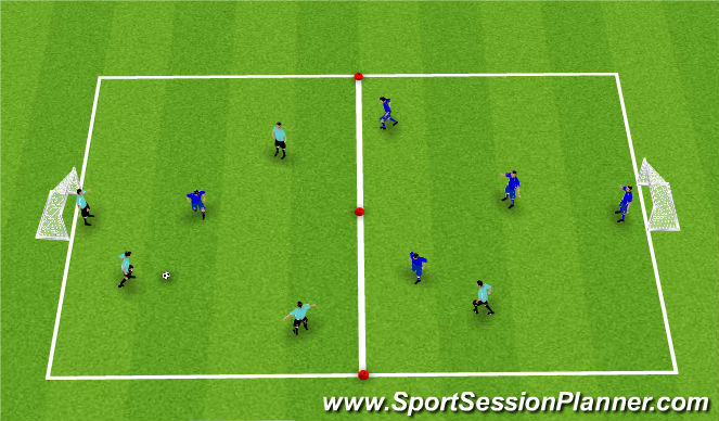 -4v4/5v5 small-side game. Play with full rules - retreat line, dribble/kicks in, etc