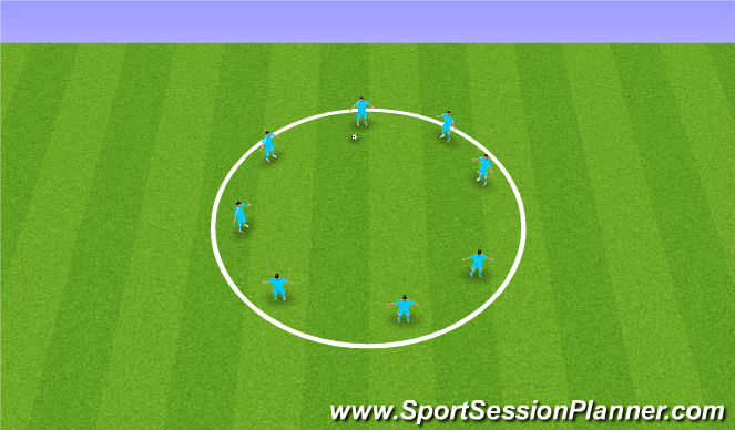 Have the group go in a circle and pass to one another. All passes muct be 1 touch and the ball can't leave the circle or stop. When a player passes the ball they must run to the designated cone and then come back to the grid. If they do this too slowly, the players in the grid won't have someone to pass to and the drill will die. Goal is to do this for 3-5 minutes without a mistake. Talk to the kids about their focus and attention to detail with thier passes. The weight and direction of the pass, communication and eye contact.