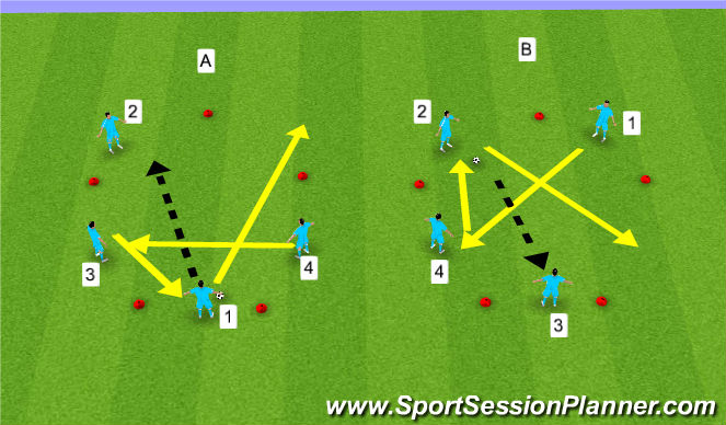 Progression from the 3 Players Passing and Moving. This time since you have 4 players the movement is that much more confusing.