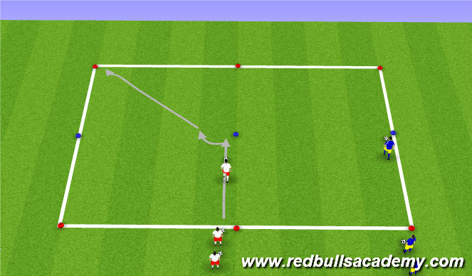 R- Force defender to stand at cone in front of attacker to give visual of defender.