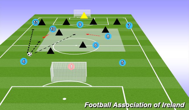 Method: Learning Phase - Focus on good movement and creating space in the shaded area. Natural stoppages to highlight opportunities for combinations