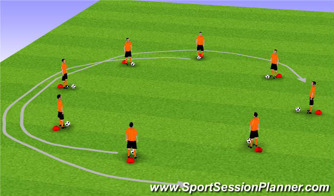 Make the circle bigger or smaller depending on the outcome you require, smaller for a better dribbling skill and bigger for a better running with the ball skill.
