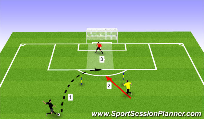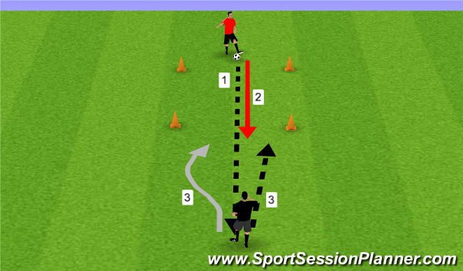 2.Un jugador ofensivo realiza un desmarque sobre la zona donde irá dirigido el balón.