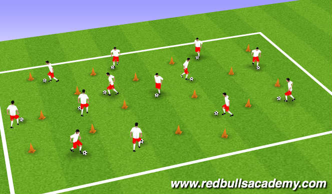 - Use laces, inside, outside and sole of the foot to move the ball around.