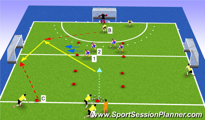 Extra information: make sure everything is in movement, left side: backhand flat passing possible