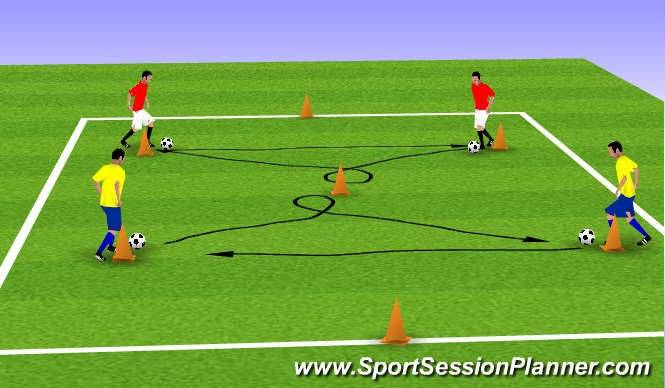 Coaching Points: work in both directions/ Left & right foot. Distance to ball. Placement of non kicking foot. Accelerate away.
