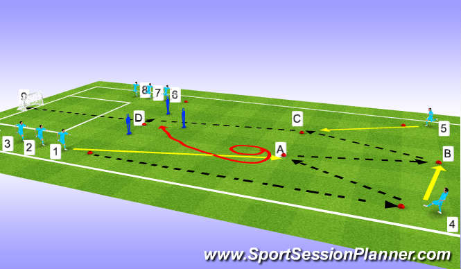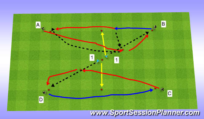 3 the other group (1 D C ) do a drill the same only player D dribbles passed player 1