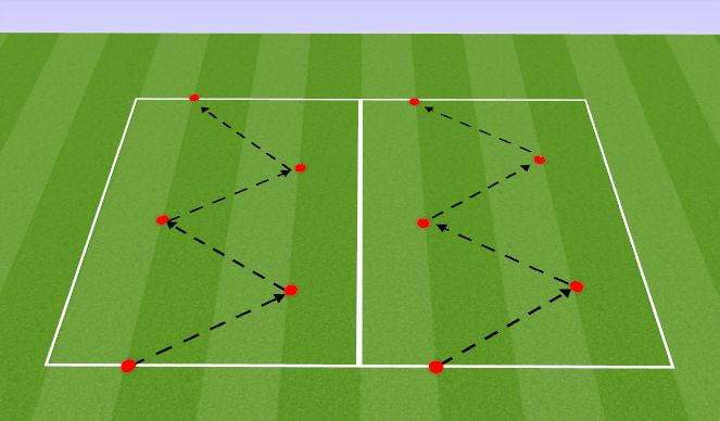 Warm Up - Working from start Markers to Centre Markers 5 Metres out and Far Markers 10M out.