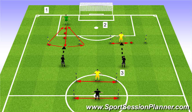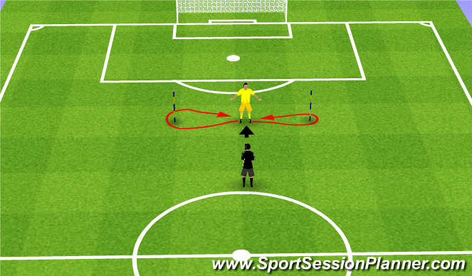 Goalkeeper starts with forward movement out and around pole to come back into centre to receive delivery from coach/server.