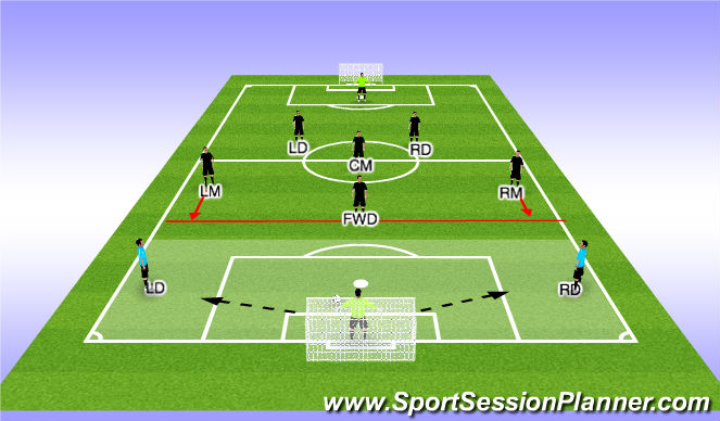 Above are starting positions for when the GK is in possession of the ball. Through out the season we will educate the players on how to play out of the back. (We are the black jerseys)