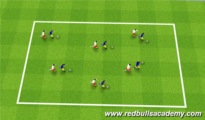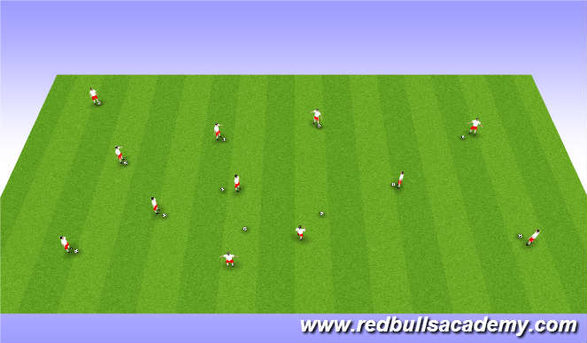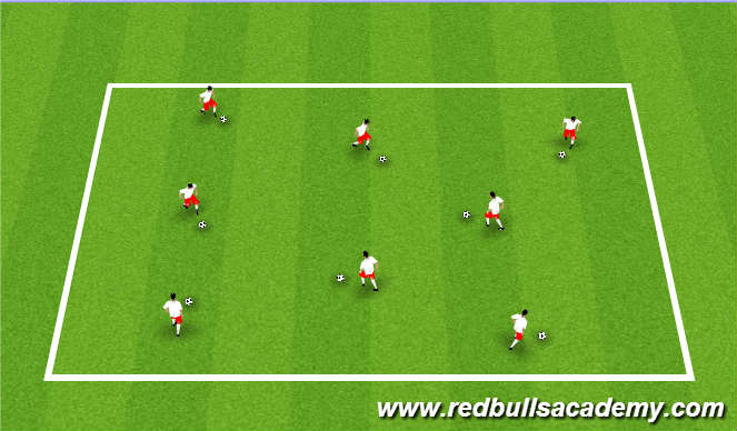 Players dribble around area performing different ball mastery/dribbling moves and changes in direction