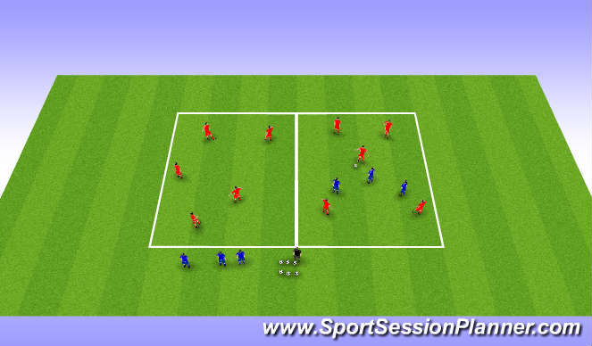 5 BP players to get to 5 passes in 1st set, if the BPO intercept ball then play switches to other half and 3 BPO players on sideline move into to attempt to win ball, the three BPO players from starting half move out to sideline.