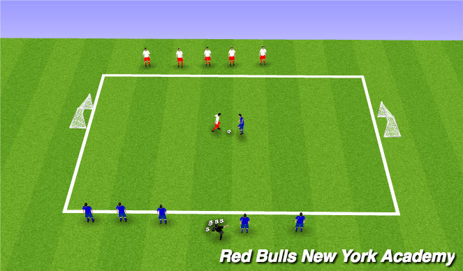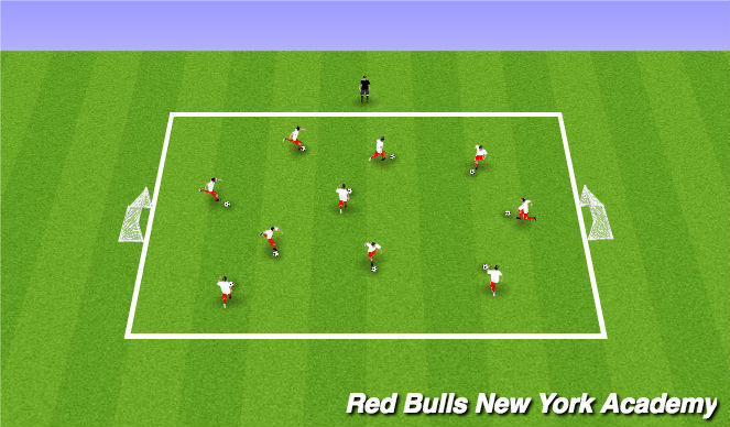 Coach rolls a ball out into the middle of the field and calls out a number. The player who's number is called from both teams comes out to play 1v1. Players can score on either goal. Once a goal is scored or the ball goes out of bounds players must return back to their sideline.