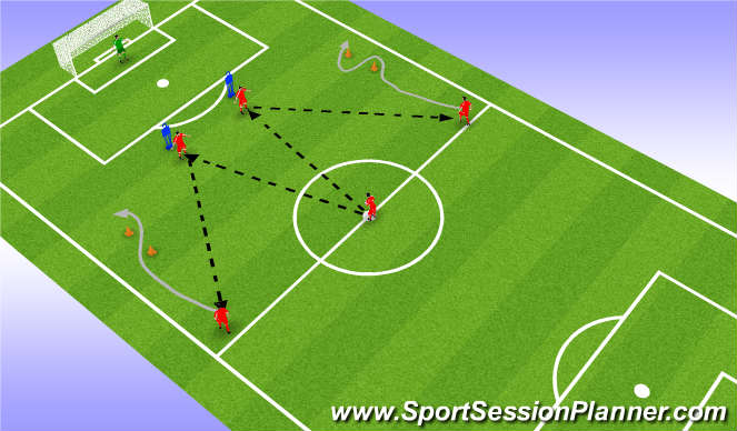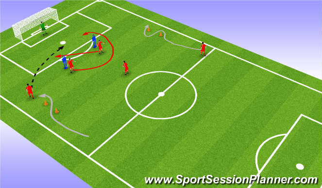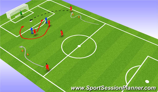 This drill ensures good movement of the forward line and results in quality crosses into a dangerous area.