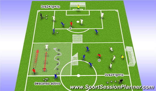 Trabajo 4x6 3vs3 mas 1 comodin y un portero.
