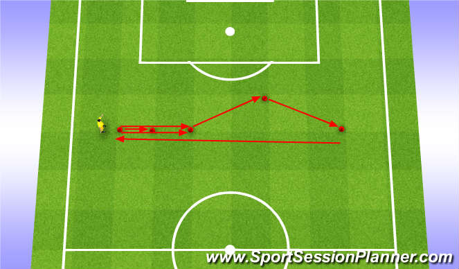 Sprint to 1st cone, back pedal to beginning and onto chest