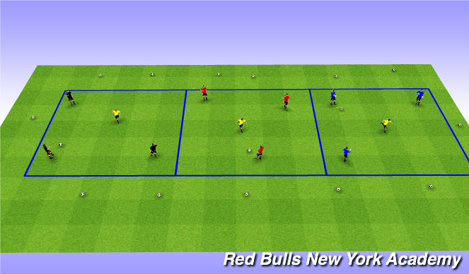 1. Four teams of three player per setup, one ball per group.