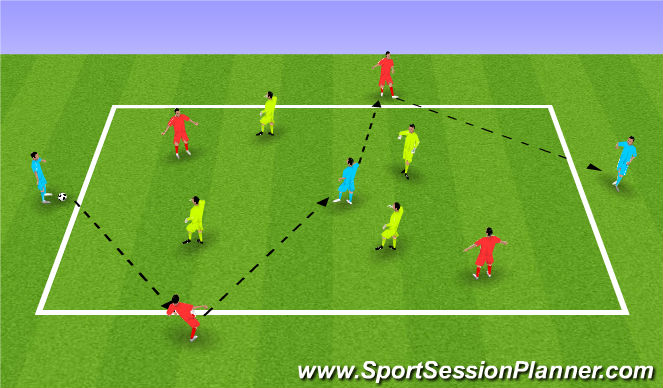 -Rather than play for a fixed time, incorporate a transition: when Yellow win the ball, they quickly distribute to a Joker, then swap places with Red and continue in possession until Red win the ball back.
