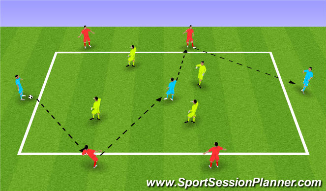 Format is 4v4+3 as shown. Object is for team in possession (Red to start) to maintain that possession with assistance from the Jokers and play up and down the grid.