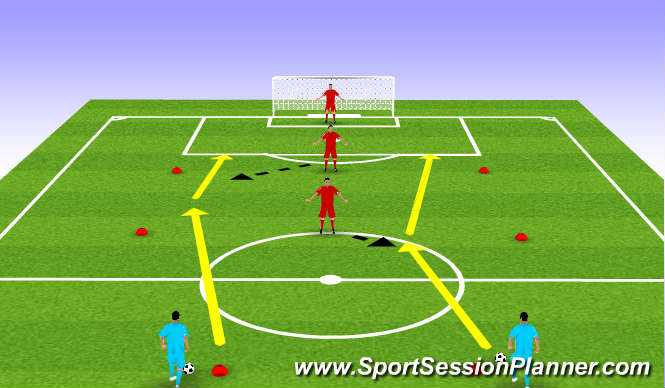 If group has prior knowledge, you can use this plan then build up into two or three teams possession where players gain extra points by dribbling through middle zone rather than passing through