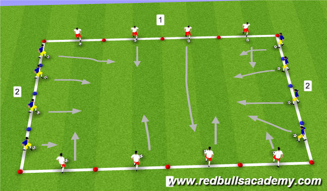 Organization: 30x25 yd grid. 10-12 players. 1 ball per player