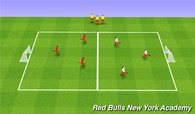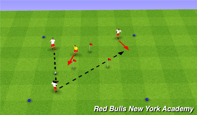 2. Attackers score by passing the ball through the central triangle to another attacking player.