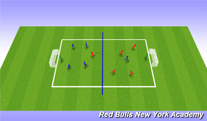 Players must pass ball to a server on their side of the field, and then make a move towards goal to receive.