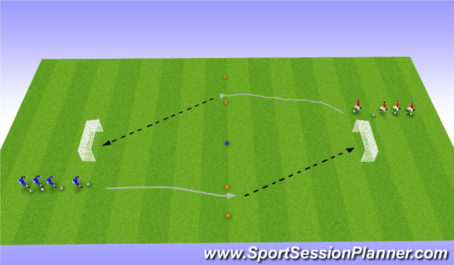 Equipments: 4 Cones. 1 Goal. Supply of balls and bibs.