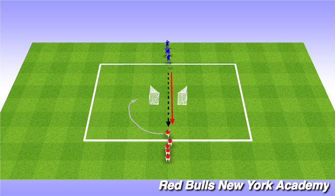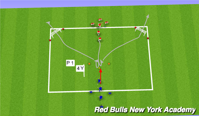 P1: Defender become closer to the gate ( 4 yards) to allow a tight 1v1 once the attacker pass the orange gate.