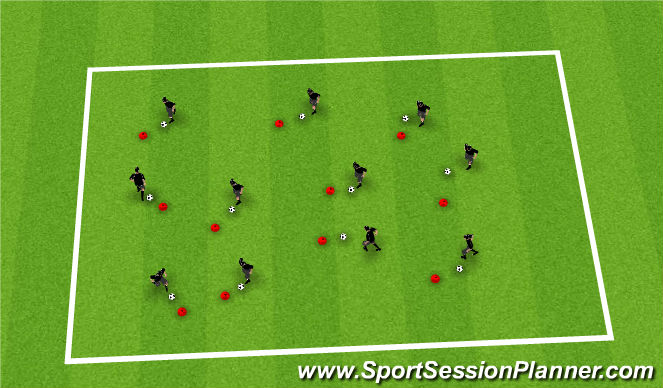 Players in 18 yard box Practicing ball mastery skills, 1v1 moves,