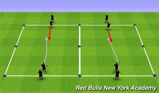 C2. Two touch passing- Sprint (first touch must keep ball in your half and angled diagonally forward)