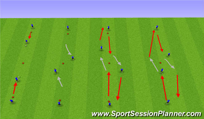 Stagger cones with ball starting at forward cone and attackers about 10 yards apart