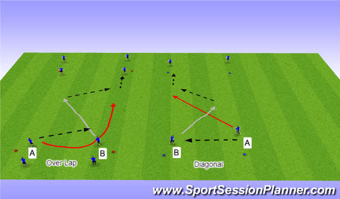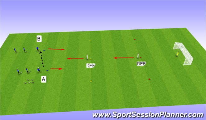Defender 2 runs out and attackers again play 2 v 1 and finish with goal