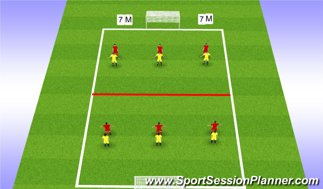 Attacking team can move out of their lanes to work the ball out of their half, but must go back to their lanes as soon as they are defending. Attackers in the attacking half may move around freely in their own half but defenders can not and must stick to their lane. Attackers can only score for their team once they have performed a turn on the defender. Attackers in the front half cannot pass back to the defensive half.