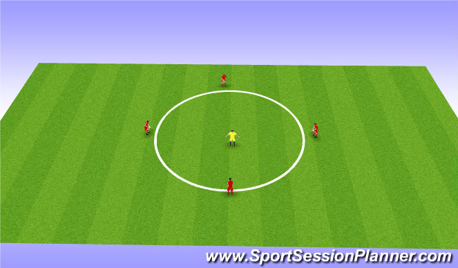 3 to 4 players in the middle of the circle, the rest outside with a ball in hands.
