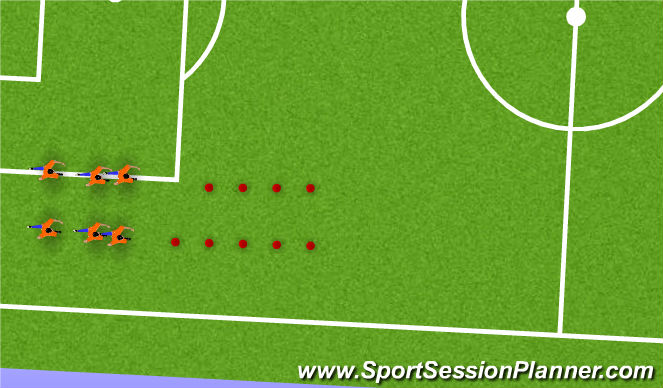 PLAYERS SPRINTS VERTICALLY THEN BACK PEDALS ONE CONE BEHIND THEN SPRINTS AHEAD TWO CONES THEN BACK PEDALS ONE CONE THEN SPRINTS AHEAD TWO CONES THEN BACK PEDALS ONE CONE THEN SPRINTS OUT AND TO BACK OF LINE