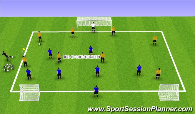 Start with diagram above. Blues try to deny orange from playing on the ground across the grid. For now oranges cannot dribble.